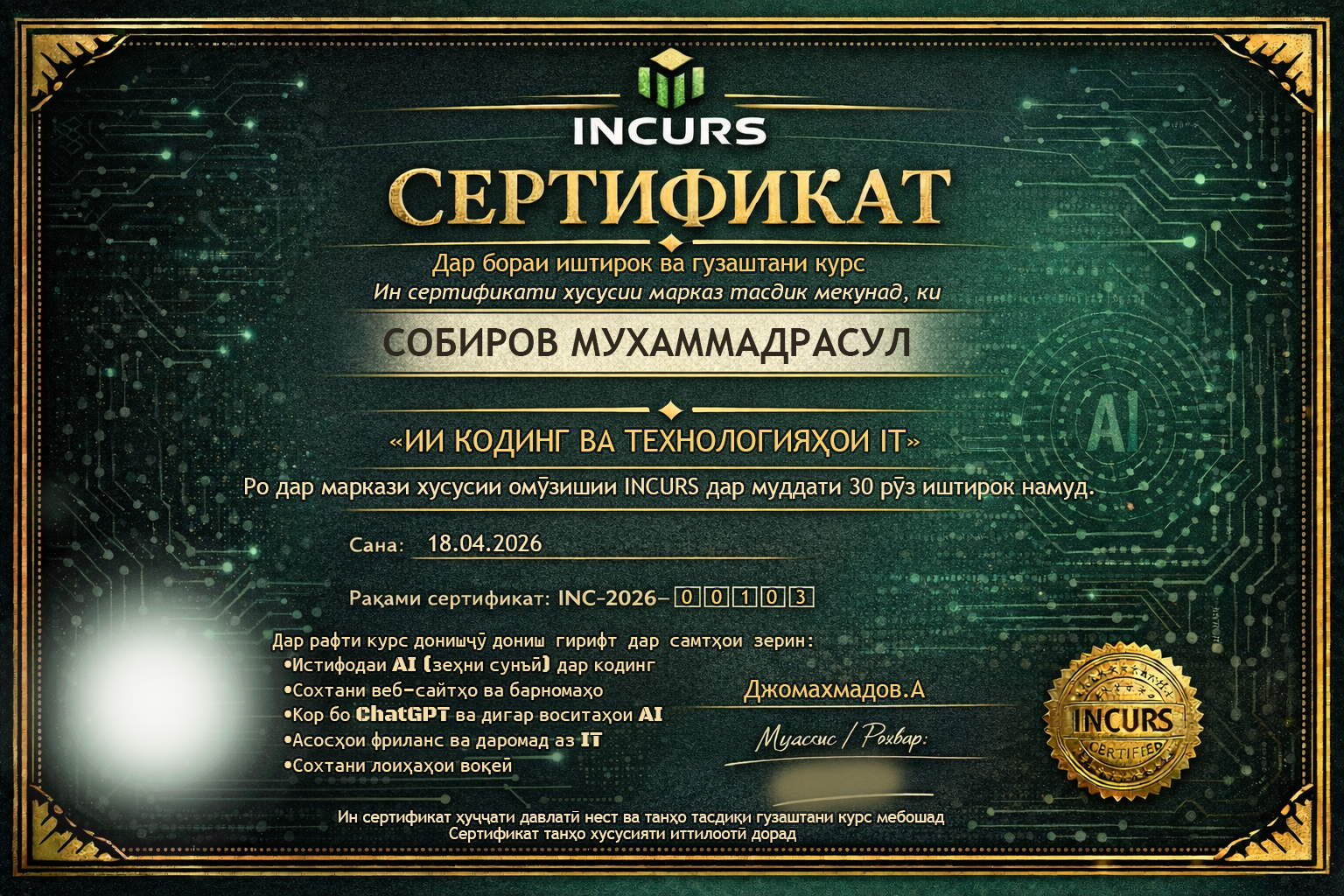 Запись подтверждена системой INCURS. Данные загружены напрямую из защищённого хранилища сертификатов.